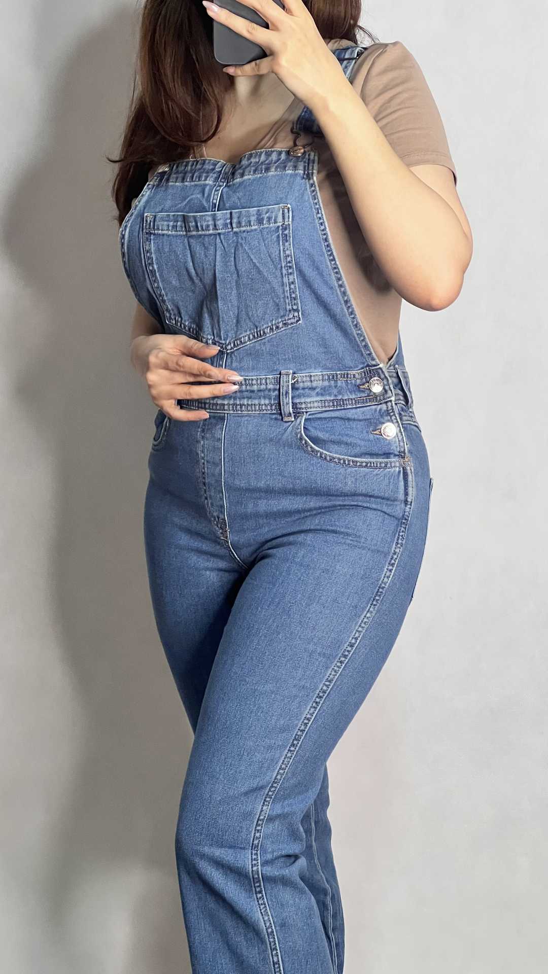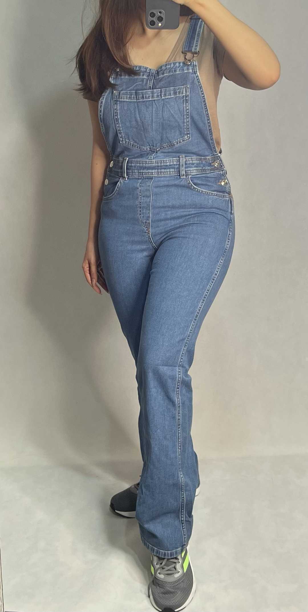 اورآل جین قابل تنظیم با قد لی کاغذی، مناسب فصل بهار و تابستان، دارای ۳ جیب جلو و ۲ جیب عقب، سایز M و L، قیمت یک میلیون و دویست هزار تومان.