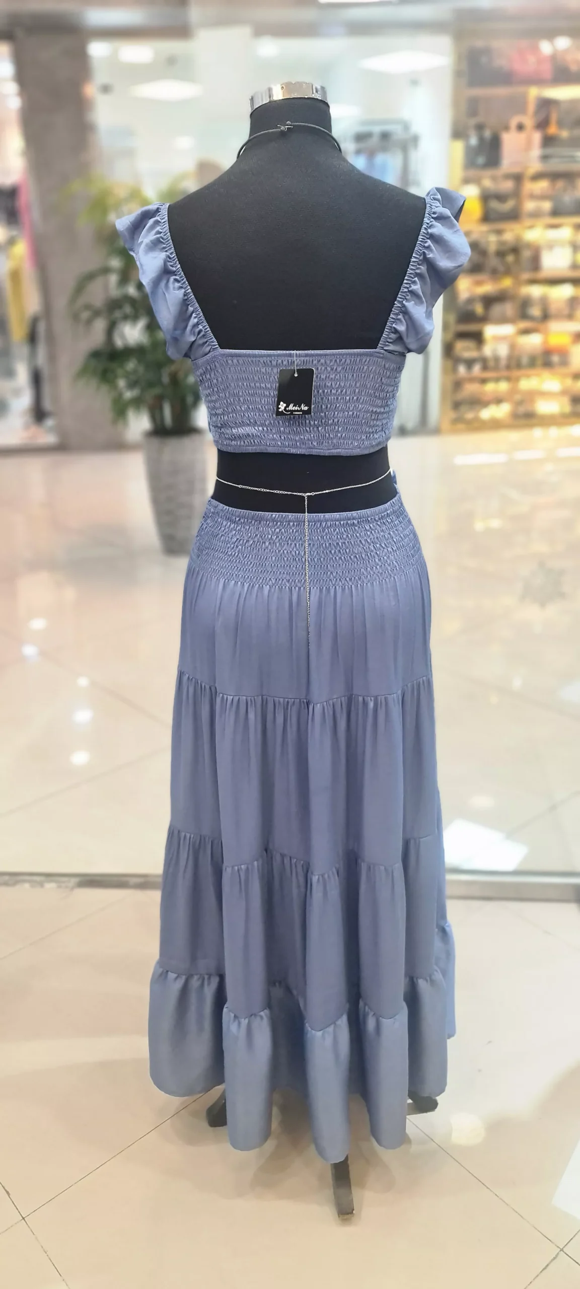 ست کراپ دامن شیک و تابستانی برند شین، در رنگ‌های مشکی و آبی. فری‌سایز تا ۴۴. راحت، خاص و جذاب برای استایل روزمره یا مهمانی.